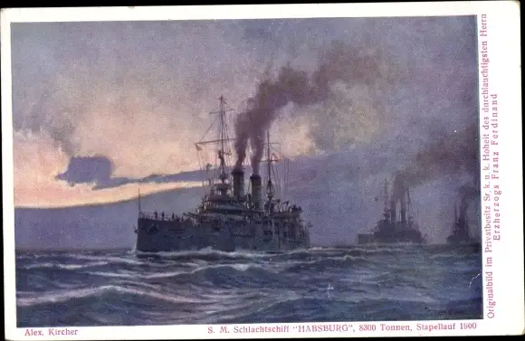 Künstler Ak Kircher, Alex, Österreichisches Schlachtschiff SMS Habsburg