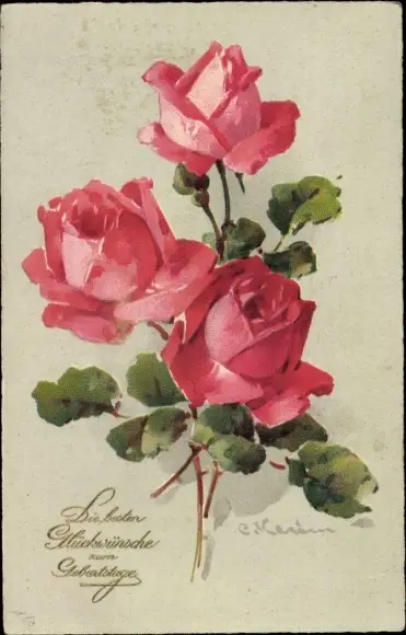 Künstler Ak Klein, C., Geburtstag, Rote Rosen