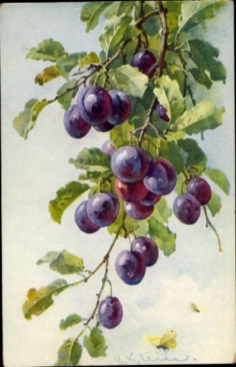 Künstler Ak Klein, C., Pflaumen, Obstbaum