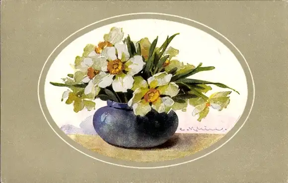Künstler Ak Klein, C., Weiße Blumen im Blumentopf