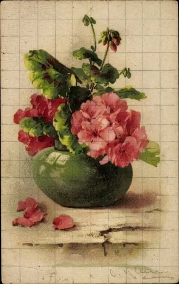 Künstler Ak Klein, Catharina, Pinke Blumen, Blumenvase