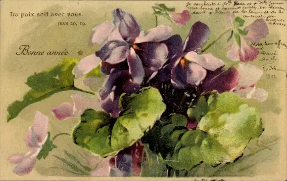Künstler Ak Klein, Catharina, Veilchen, Psalm, Fröhliches Neujahr