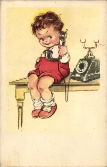 Künstler Ak Kleines Kind beim Telefonieren, Telefon