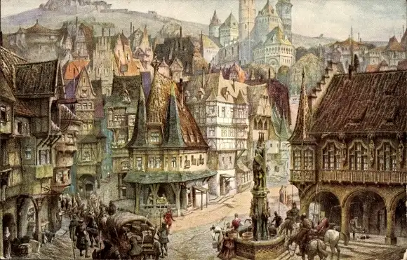 Künstler Ak Klemm, Jos., Inneres einer Stadt, 15. Jahrhundert