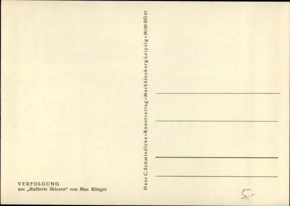 Künstler Ak Klinger, Max, Verfolgung, Radierte Skizzen