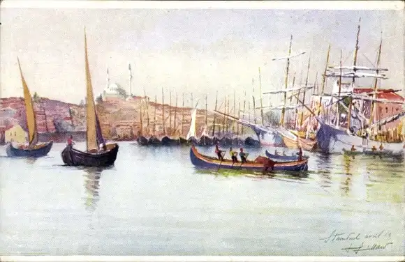 Künstler Ak Konstantinopel Istanbul Türkei, Hafenpartie, Segelboote