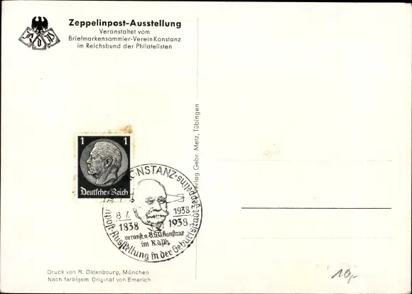 Künstler Ak Konstanz Bodensee, Zeppelinpost Ausstellung Juli 1938