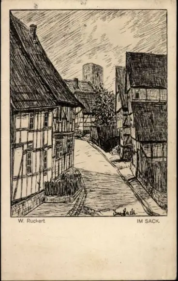 Künstler Ak Korbach in Hessen, Im Sack, Fachwerkhäuser