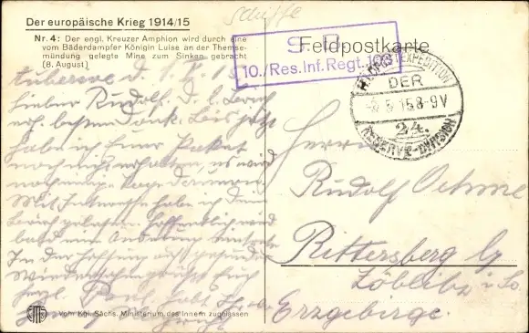 Künstler Ak Krause Wichmann, Untergang des HMS Amphion, Seebäderdampfer Königin Luise, HAPAG