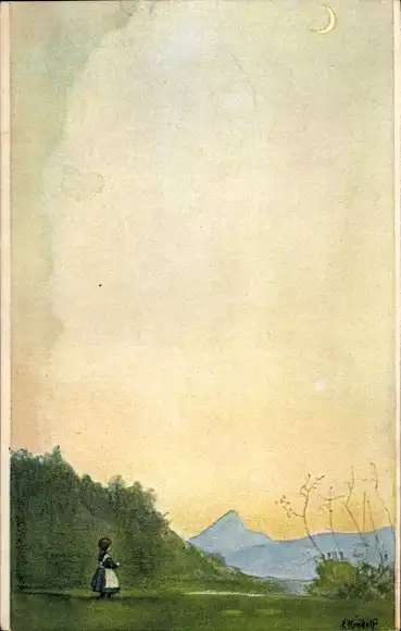 Künstler Ak Kreidolf, E., Mond nimmt zu