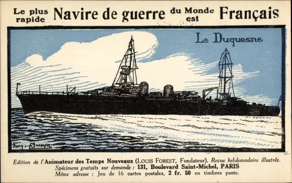 Künstler Ak Kriegsschiff Le Duquesne, Schwerer Kreuzer