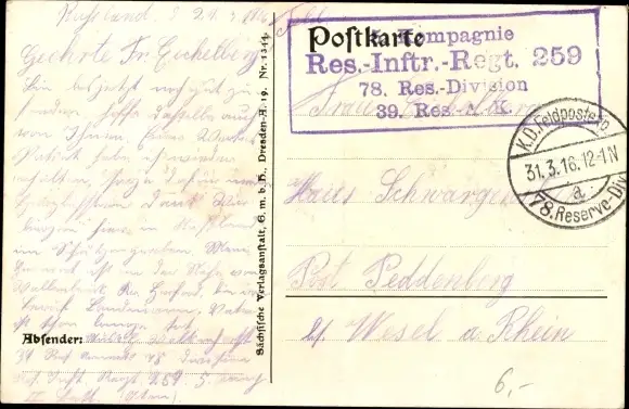 Zustand, siehe Scan, gelaufen, 1916 - ca 14 cm X 9 cm