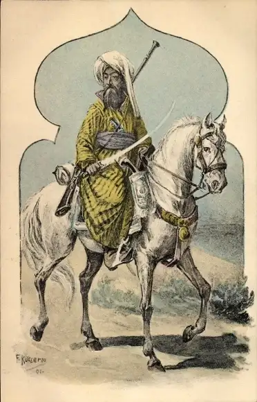 Künstler Ak Kuclern, F., arabischer Soldat zu Pferd, Reiter