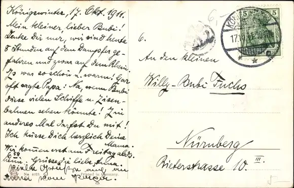 Zustand, siehe Scan, gelaufen, 1911 - ca 9 cm X 14 cm