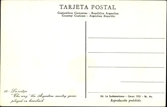 Künstler Ak La sortija, Der Ring, das argentinische Landspiel, gespielt zu Pferd