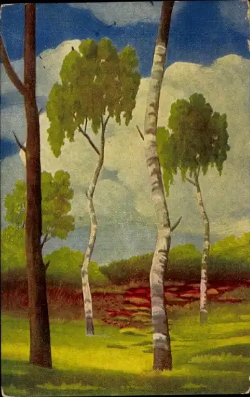 Künstler Ak Landschaft, Birken