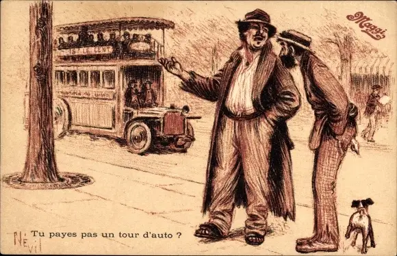 Künstler Ak Landstreicher, Bus, Maggi Reklame