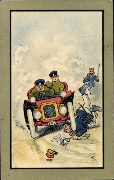 Künstler Ak Lane Vicary, Charles, Auto fährt über einen Polizisten