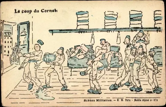 Künstler Ak Le coup du Cornet, Scenes Militaires