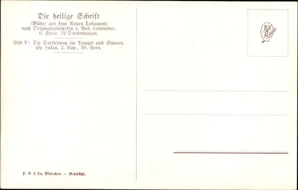 Künstler Ak Leinweber, Rob., L'Histoire Sainte, La presentation dans le temple et Symeon