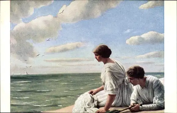 Künstler Ak Lempoels, J., Die Möwen, Liebespaar am Ufer