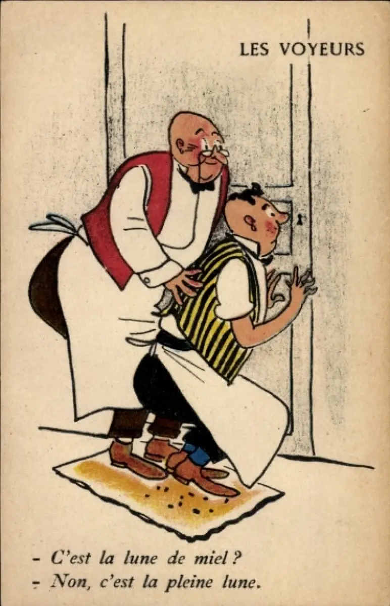 Künstler Ak Les Voyeurs, C'est la lune de miel ? Non, c'est la pleine lune, Humor