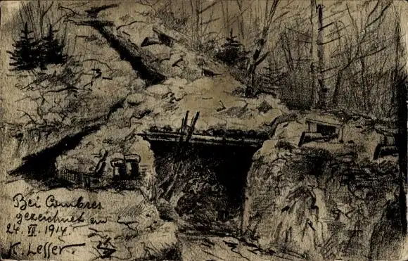Künstler Ak Lesser, K., Unterstand, I. WK