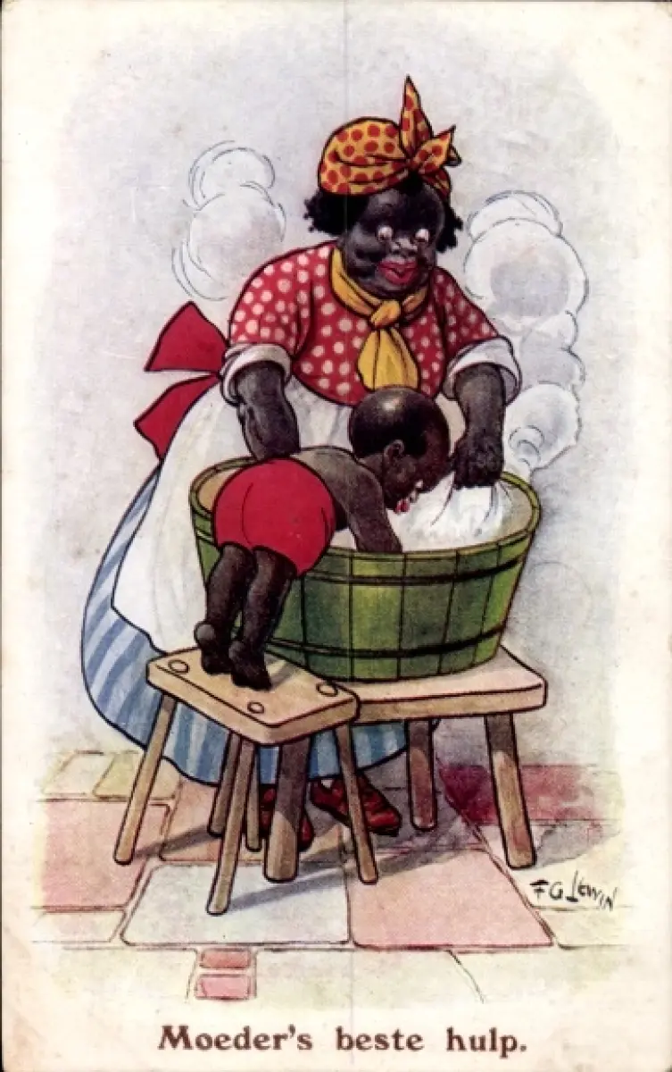 Künstler Ak Lewin, Frau wäscht Wäsche, Kind