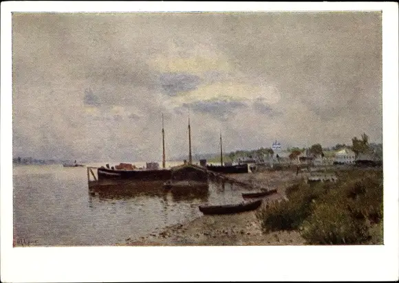 Künstler Ak Lewitan, I. I., Flussufer, Landeplatz