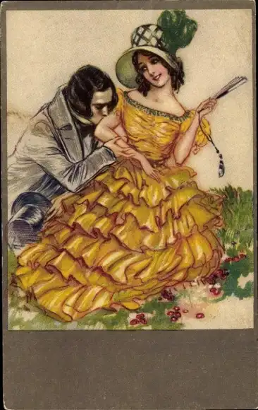 Künstler Ak Liebespaar, Mann küsst den Arm der Frau