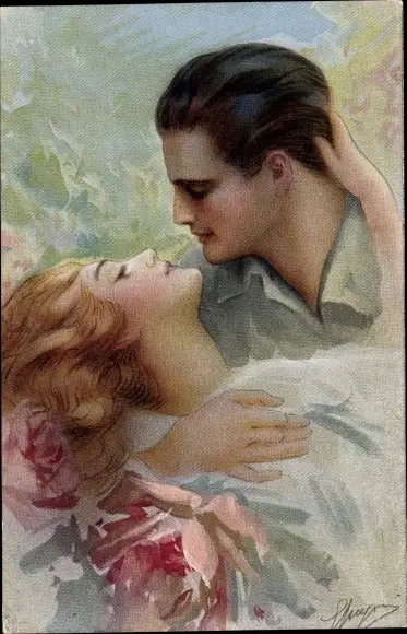 Künstler Ak Liebespaar, Umarmung