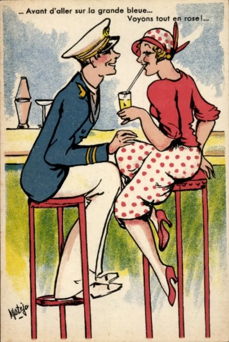 Künstler Ak Liebespaar in der Bar, Mann in Uniform