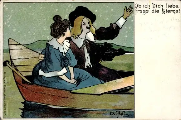 Künstler Ak Liebespaar in einem Ruderboot
