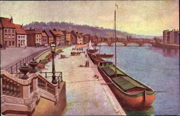 Künstler Ak Liège Lüttich Wallonien, vue générale du Quai, le pont