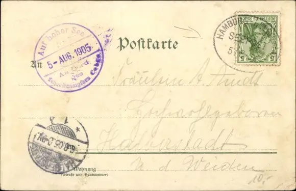 gelaufen als Bahnpost 1905, Eckknicke, sonst guter Zustand