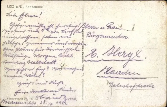 Künstler Ak Linz in Oberösterreich, Straßenbahn, Landstraße, Kutsche