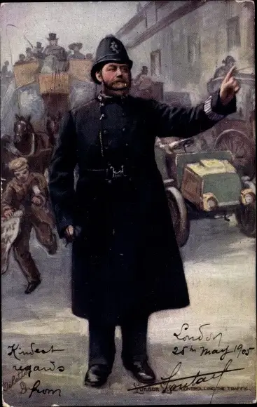 Künstler Ak London City, Controlling the Traffic, Verkehrspolizist