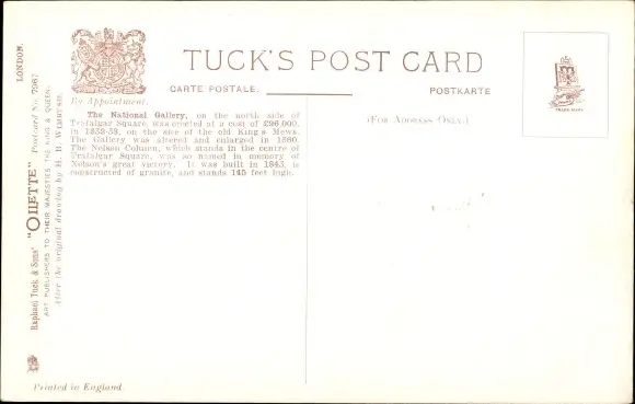 Künstler Ak London City, The National Gallery, Street View