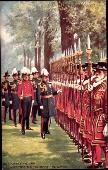 Künstler Ak London, The King inspecting the Yeomen of the Guard