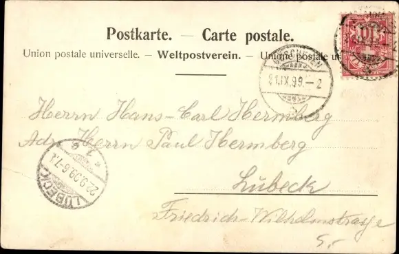 Zustand, siehe Scan, gelaufen, 1899 - ca 14 cm X 9 cm
