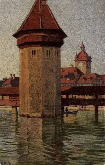 Künstler Ak Luzern Stadt Schweiz, Wasserturm, Rathaus