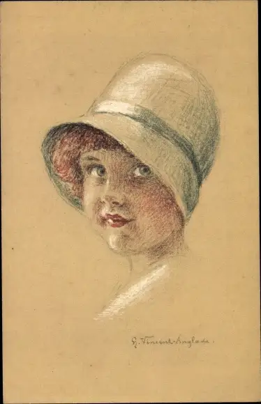 Künstler Ak Mädchen-Portrait im Hut