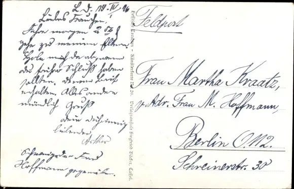 ungelaufen, Rückseite beschrieben, datiert 1916, sehr guter Zustand