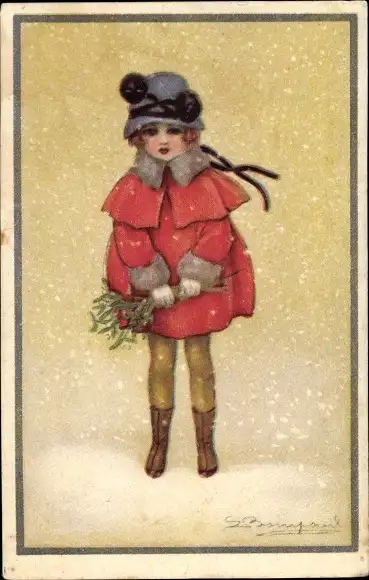 Künstler Ak Mädchen mit Misteln im Schneefall