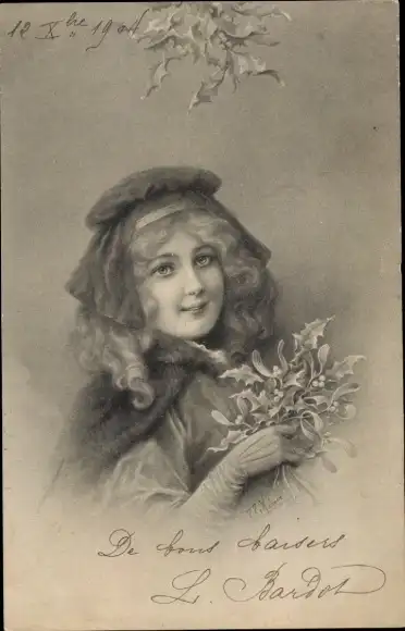 Künstler Ak Mädchen mit Stechpalmenzweigen