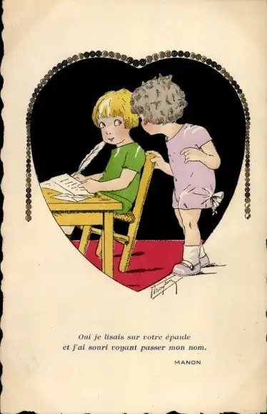Künstler Ak Mädchen schreibt einen Brief, Kinder, Herz
