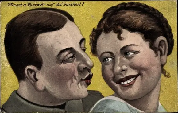 Künstler Ak Magst a Busserl, auf dei Guscherl