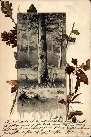 Künstler Ak Mailick, Waldpartie, Eichenblätter