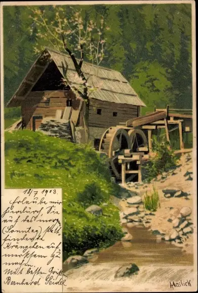 Ansichtskarte, Postkarte, Wassermühle, Wassermühlen