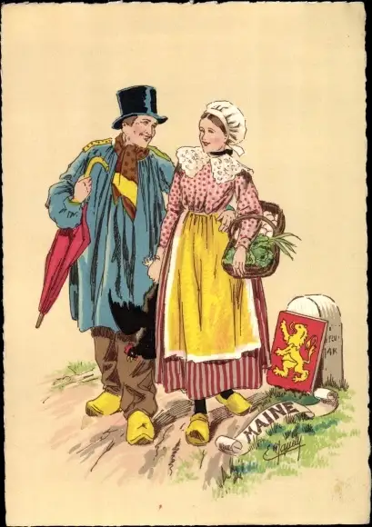 Künstler Ak Maine, Paar in französischen Trachten